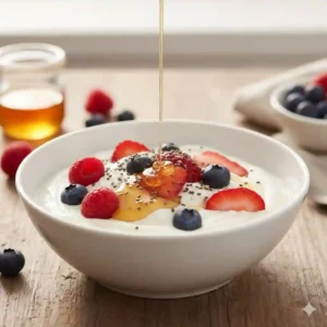 - Breakfast: Greek yogurt with berries, a drizzle of honey, and a sprinkle of chia seeds.