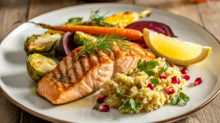 Grilled salmon with roasted vegetables, quinoa salads, and Greek yogurt with berries are all great meals for supporting bone health.