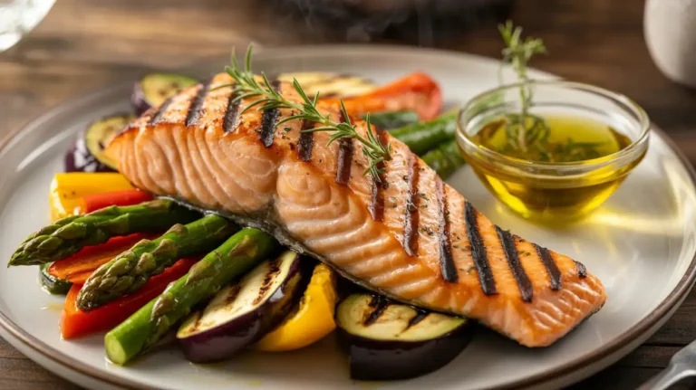- Dinner: Try grilled salmon with a side of roasted vegetables and whole grains like farro or quinoa.