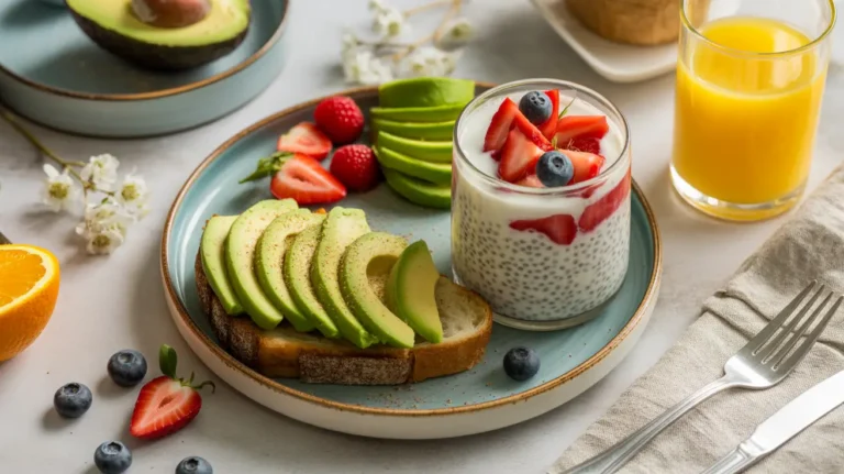 For a satisfying breakfast, try oatmeal topped with chia seeds and fresh fruit or avocado toast with a drizzle of olive oil and a sprinkle of sea salt.