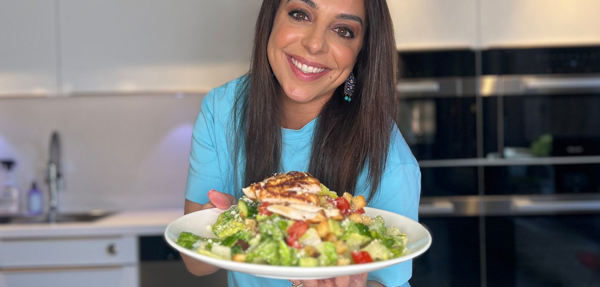 Mediterranean Diet Recipes Caesar Salad with Caesar Marinated Grilled Chicken! This mouthwatering Chicken Caesar Salad is a delicious blend of flavors and textures. Tender, juicy chicken bre
