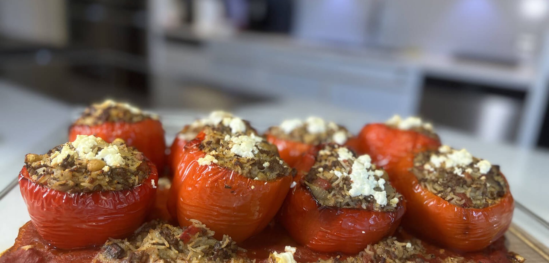 Mediterranean Diet Recipes Mediterranean Stuffed Red Peppers Bring the flavors of the Mediterranean to your kitchen with these delicious stuffed red peppers! Filled with ground beef, chickpe