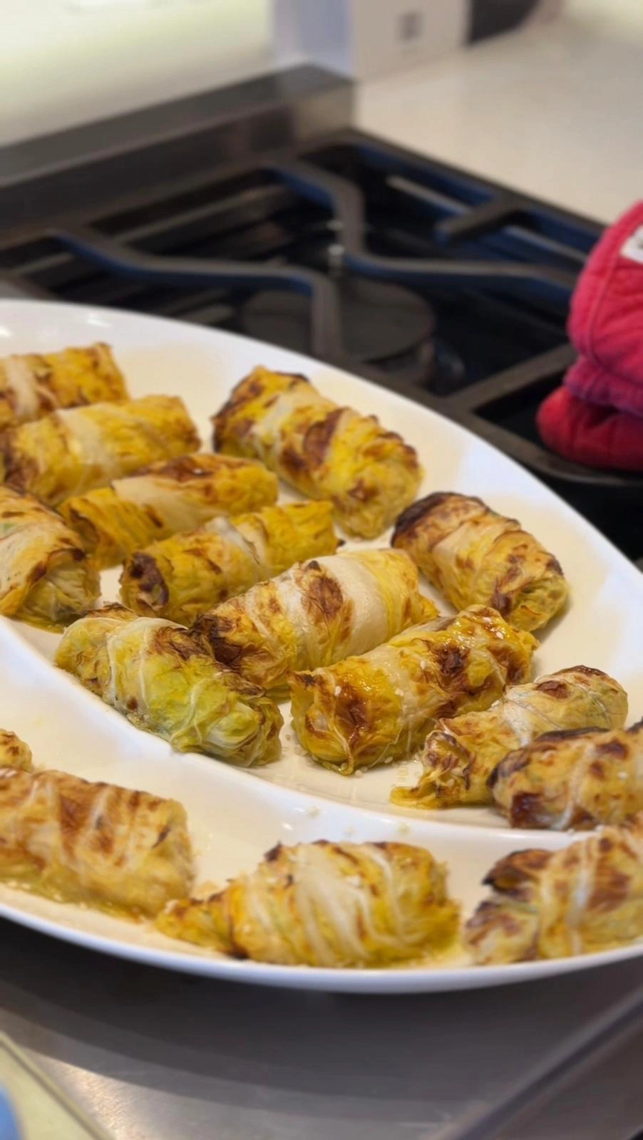 Prepare the cabbage: Blanch whole cabbage leaves for 30-45 seconds until tender. Once cooled, separate leaves, and sprinkle with 1 tsp of salt after blanching.